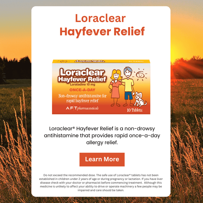 Loraclear® is used for the relief of symptoms associated with perennial and seasonal rhinitis (hay fever), such as sneezing, nasal discharge and itching, as well as burning and itching of the eyes. It is also used for the relief of symptoms and signs of chronic urticaria (hives) and other allergic skin disorders.